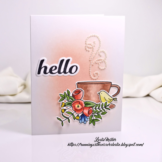 Gosh Leslie, this is so pretty! You could use this image for so many occasions. I love the way you designed your card, beautiful coloured flowers and cup, the bit of warm glow sponged in the background and the string of pearls for the steam. Delightful! Just back from vacation, trying to get caught up on my blog reading. Have a great weekend Leslie, off to see your latest post.